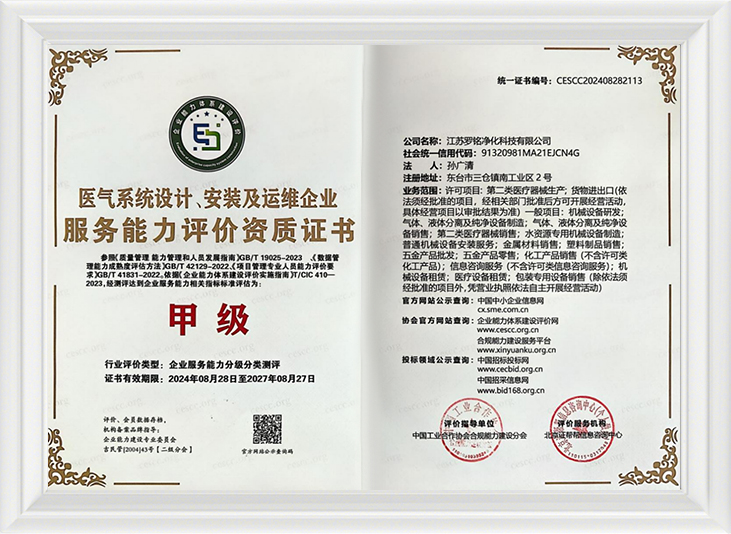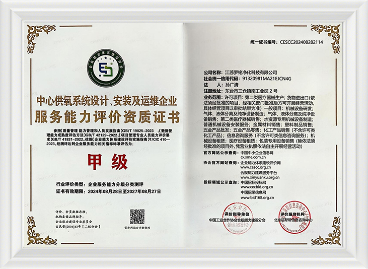 การออกแบบระบบจ่ายออกซิเจนส่วนกลาง การติดตั้งและการดำเนินงานและการบำรุงรักษาคุณสมบัติการประเมินความสามารถในการให้บริการขององค์กร