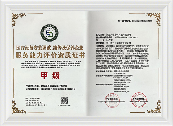 การออกแบบระบบก๊าซทางการแพทย์ การติดตั้งและการดำเนินงานและคุณสมบัติการประเมินความสามารถในการให้บริการขององค์กรการบำรุงรักษา