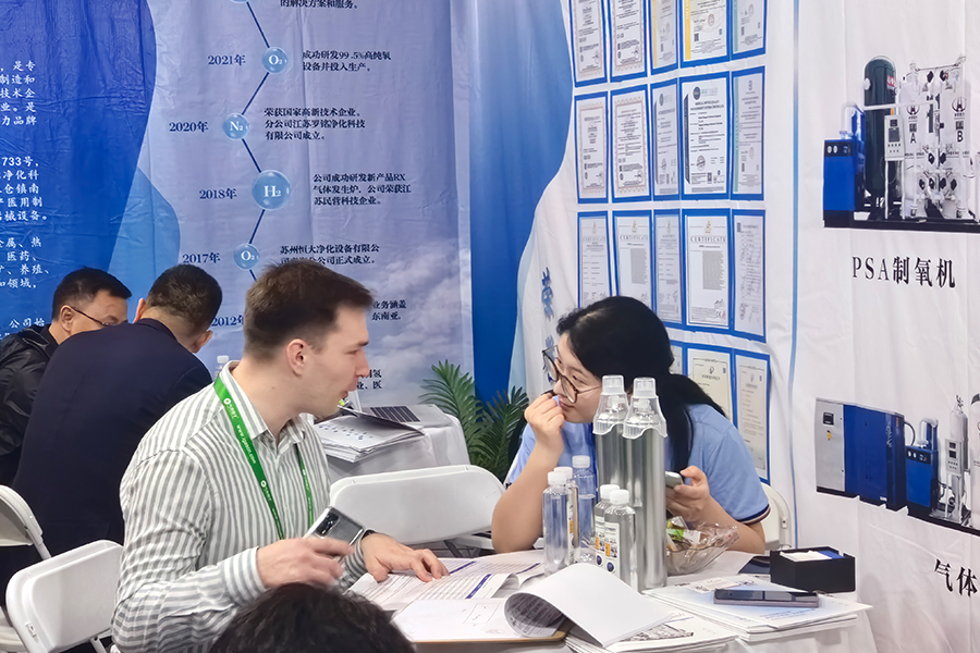 จากภาพภายในงาน จะเห็นได้ว่าบูธของเราจัดแสดงภาพอุปกรณ์ต่างๆ ของเราอย่างโดดเด่น ทั้งเครื่องกำเนิดออกซิเจน เครื่องกำเนิดไนโตรเจน เครื่องกำเนิดออกซิเจนความบริสุทธิ์สูง เครื่องกรองก๊าซ และอุปกรณ์เติมก๊าซ นอกจากนี้ ยังมีการจัดแสดงเกียรติคุณและคุณวุฒิต่างๆ ที่ Jiangsu Luoming จัดขึ้นอีกด้วย ทีมขายเฉพาะของเราซึ่งเต็มไปด้วยพลัง กำลังใช้ประโยชน์จากความรู้เชิงลึกในอุตสาหกรรมเพื่อแนะนำอุปกรณ์ล้ำสมัยของเราให้กับลูกค้าที่มาเยือน